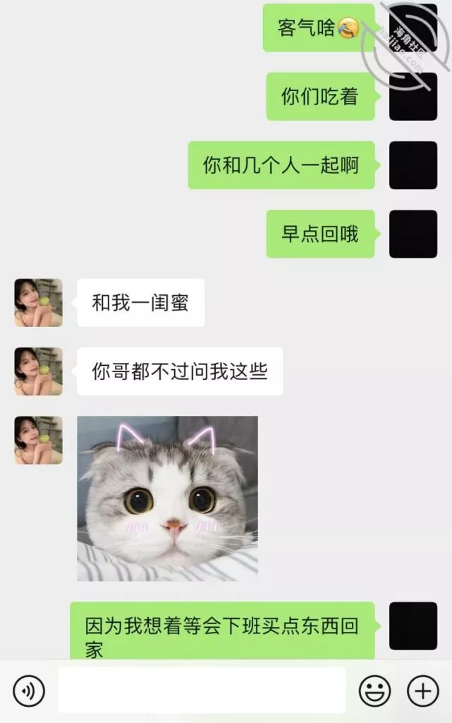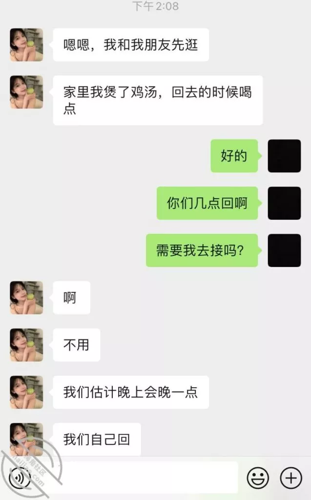 咱就是想偷拍都不知道从何下手,小嫂子要上班,我也要上班,回家后又是“各找各妈各回各房”的感觉,不过小嫂子今天倒是主动在聊天软件上叫我明天出去开小灶,当然是真真实实的开小灶吃饭,不是别的,是别的就更好了,我肯定不装君子了,今天回家也还是没看见小嫂子,因为她朋友过生日,就希望她不要喝太多酒吧, 酒这个东西喝起来就上头,想起来也是有点不放心,没啥图片放,放个简单的聊天记录和小嫂子的今日朋友圈吧,迷茫了迷茫了……