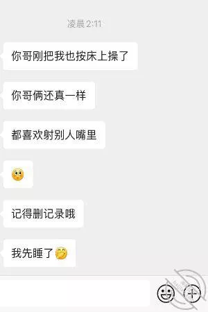 然后出现的对话,让我明白了,小嫂子是需要我的,不论是心理上还是生理上,小嫂子都是需要和渴望我的,我压抑着内心的兴奋和小嫂子聊着,后来才知道小嫂子原来是在酒店厕所和我聊天,我暗自庆幸还好昨天晚上忍住了没给她发信息。