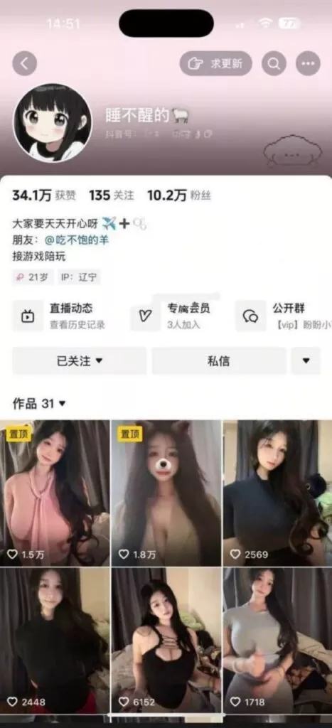 抖音10万粉丝超s巨扔擦边网红睡不醒的羊擦边赚钱不如高价陪睡