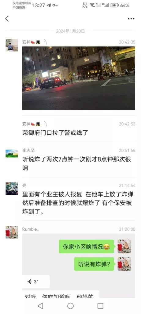 1月20日晚,温州鹿城区万源路白麓城地下车库发生爆炸,大量特警赶赴现场并拉起警戒。业主群里称发生了两次爆炸。怎么特警出动了?不应该是消防过去么