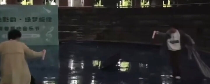 太抽象了!浙江横店影视职业学院当代大学生手持假JB雨中决战